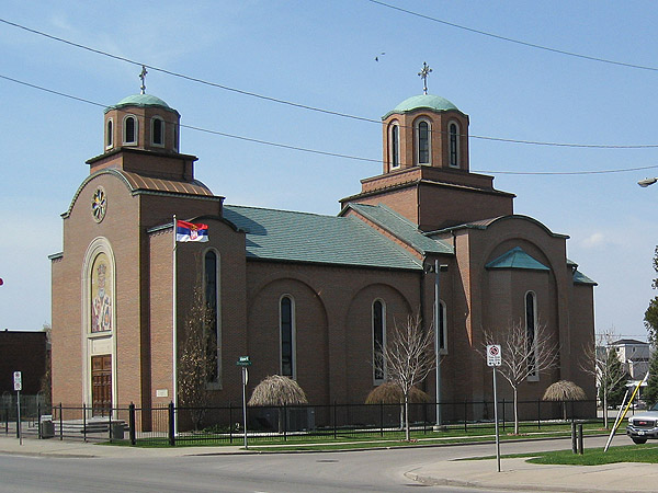 St. Nicholas Serbian Orthodox Church was built in the East End of Hamilton in 1974. It sits at the northwest corner of Barton Street East and Division Street. It was built in a Serbo-Byzantine Style.